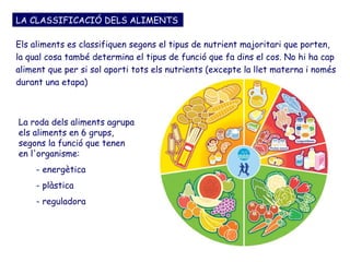 Els aliments es classifiquen segons el tipus de nutrient majoritari que porten,
