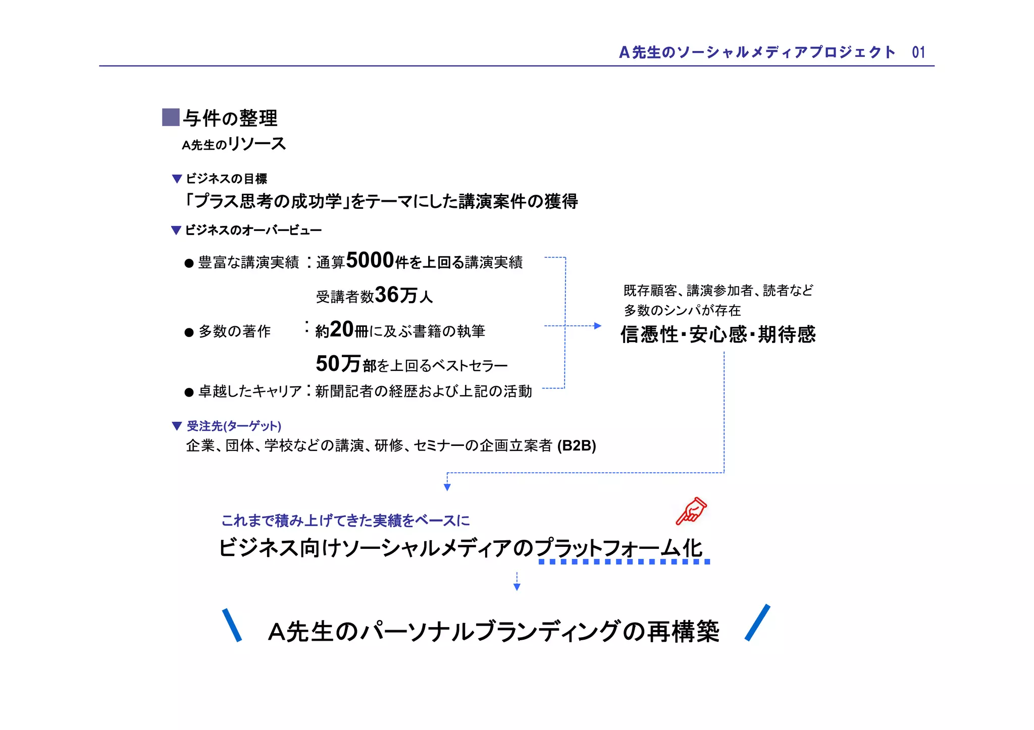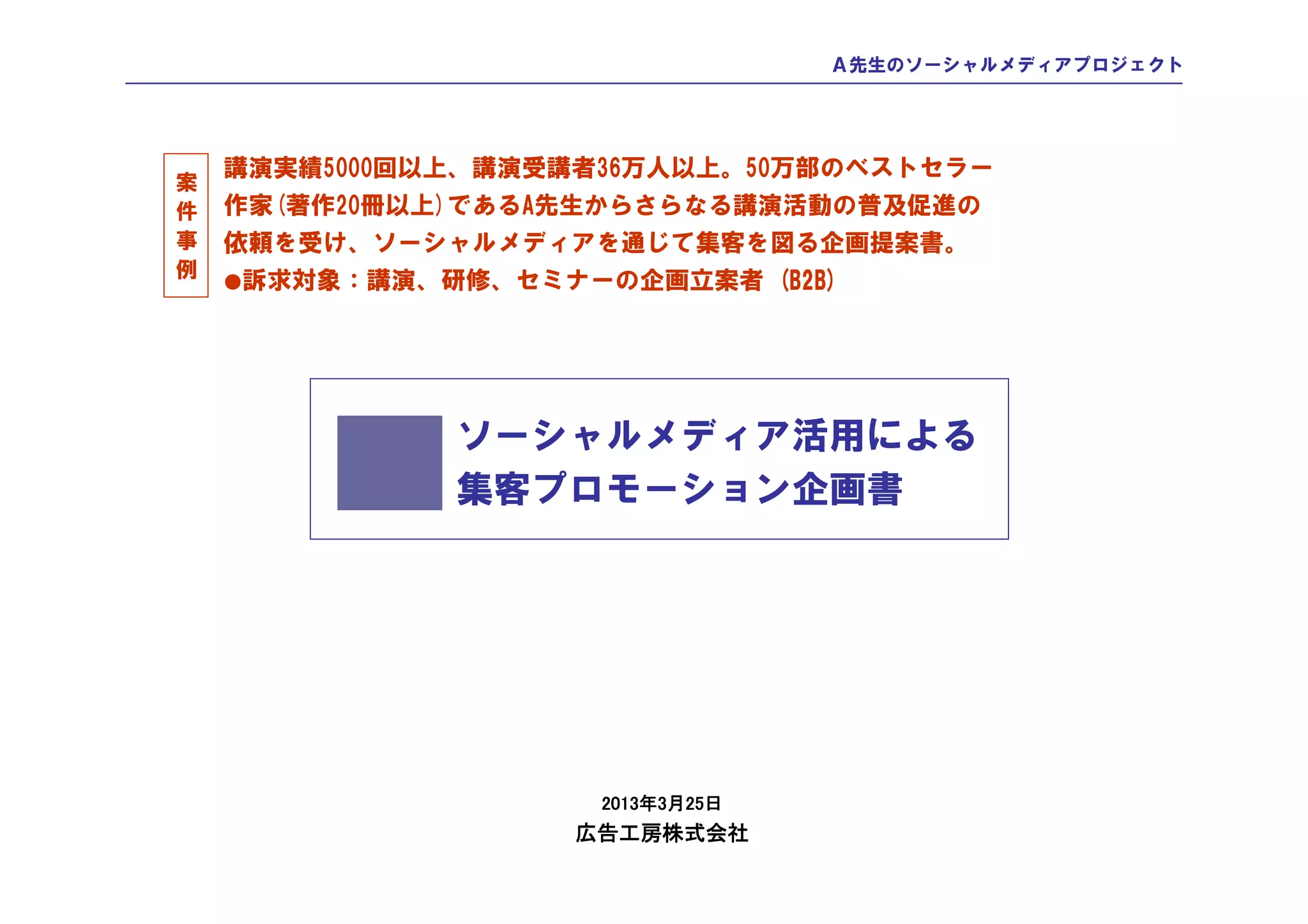 例 依頼を受け、ソーシャルメディアを通じて集客を図る企画提案書。