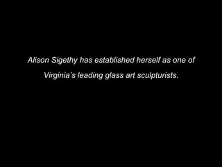 Alison Sigethy is a leading glass art sculptor in Virginia whose handmade and affordable artwork is inspired by nature, featuring dynamic pieces with elegance, light and shadows, and water movement that are suitable for public, commercial, home, and business spaces.