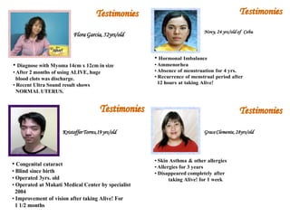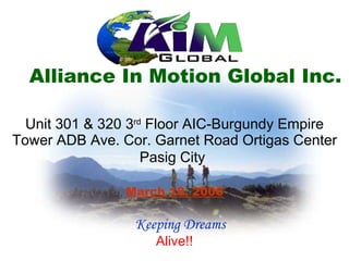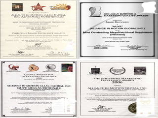 This document discusses the business and products of Alliance In Motion Global Inc. (AIM Global), a company that produces herbal supplements and food products. Some key points: