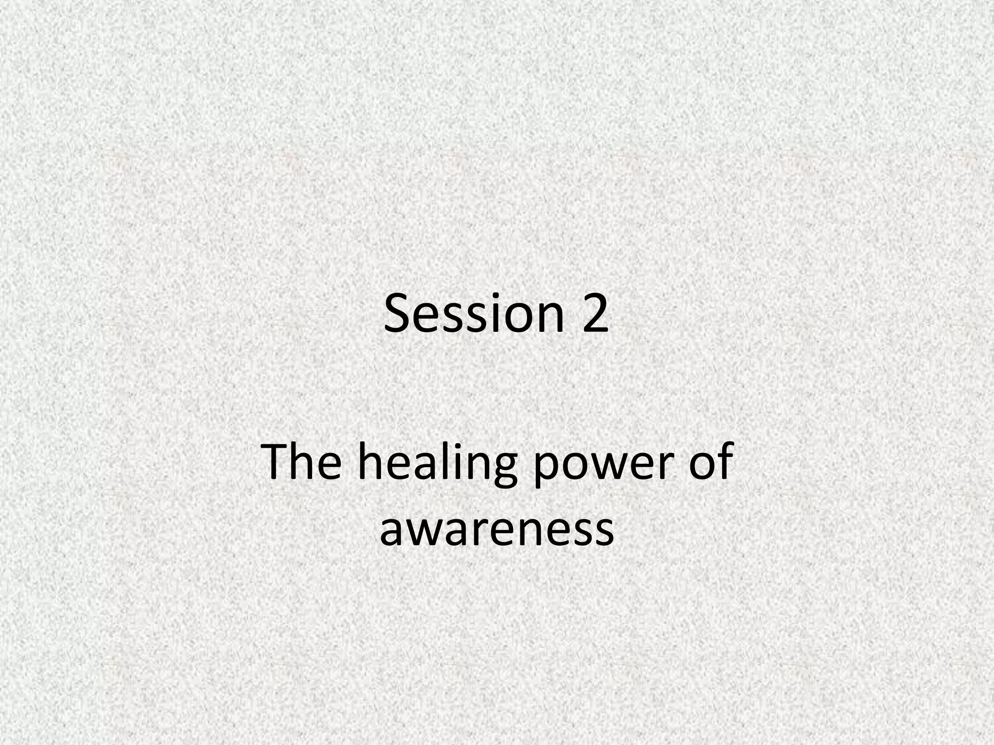 The document discusses two modes of the mind: the doing mode and the being mode. The doing mode involves problem-solving, rumination, and making things the way we think they should be, which can worsen negative emotions. The being mode is awareness and mindfulness - paying attention to the present moment without judgment. Mindfulness can help disengage thoughts, live in the present, and stop negative mental patterns that lead to depression. The rest of the program teaches how to cultivate mindfulness as a skill to change one's life.
