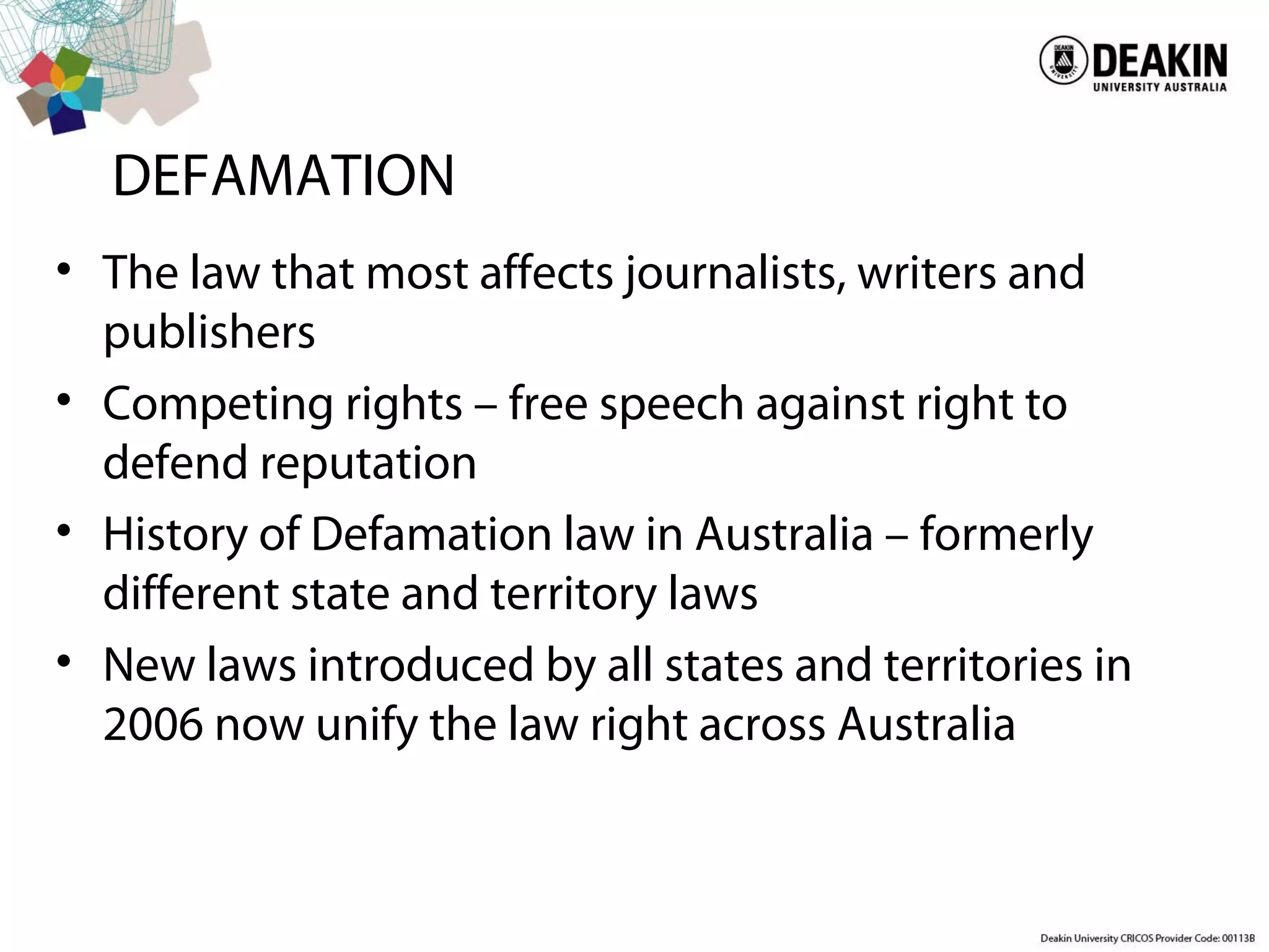 The document outlines the legal framework surrounding defamation in Australia, emphasizing the necessary elements for a successful defamation claim, including publication, identification of the plaintiff, and the defamatory nature of the material. It details the various defenses available to defendants, such as truth, honest opinion, and qualified privilege, and discusses the implications of new laws that unify defamation statutes across states. Additionally, it highlights the financial and procedural complexities involved in defamation actions, as well as the impact on journalism and public discourse.