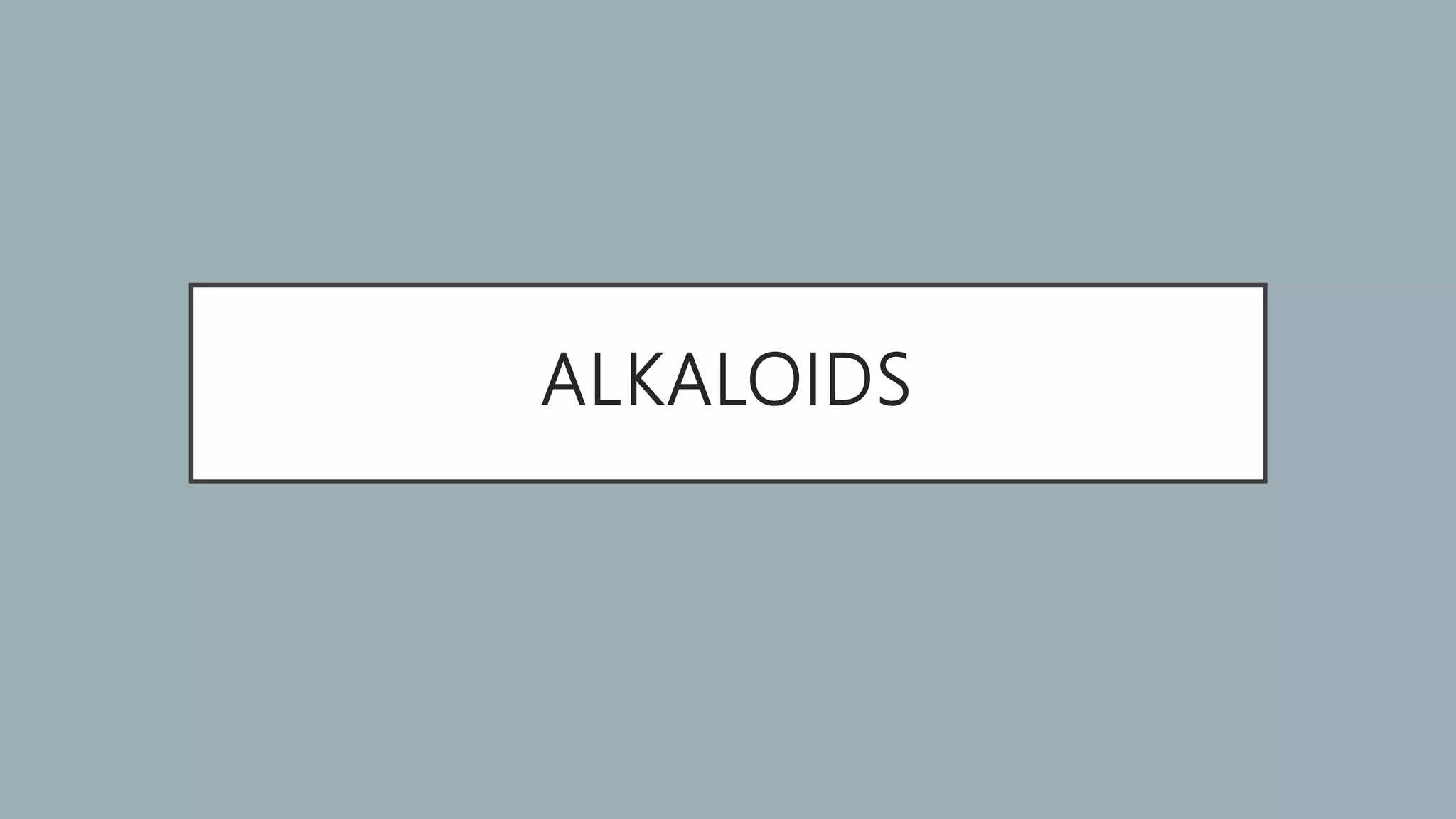 This document discusses alkaloids, which are nitrogen-containing organic compounds that have pharmacological effects on humans and animals. It defines three types of alkaloids - true alkaloids, protoalkaloids, and pseudoalkaloids - and provides examples of each type. The document also examines two specific alkaloid-containing plants - vinca and belladonna - describing their macroscopic characteristics, chemical constituents, and medicinal uses.