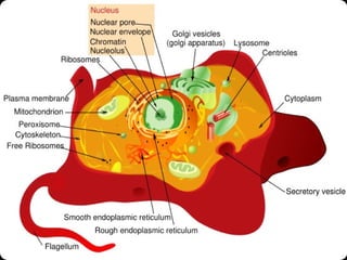 Cells were first observed in the 1650s with the invention of the microscope. Early scientists like Leeuwenhoek and Hooke made early observations of cells but it was not until the 19th century that the cell theory was developed. The cell theory states that all living things are made of cells, cells are the basic functional units of life, and new cells are produced from existing cells. Many scientists through the 1800s performed experiments disproving the theory of spontaneous generation and showing that cells only come from other cells, culminating in Pasteur's experiments with swan neck flasks. The cell contains organelles that allow it to carry out life functions like the nucleus, mitochondria, chloroplasts, and cell membrane.