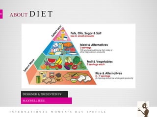 This document contains information about maintaining a healthy diet and natural remedies for common ailments. It provides dietary recommendations for overall health, including proper macronutrient and micronutrient intake. It also lists 15 everyday ailments and their corresponding natural remedies involving dietary changes and supplements. The document emphasizes eating a variety of fruits, vegetables, whole grains and healthy fats/proteins to obtain necessary vitamins, minerals and other nutrients to prevent common illnesses.