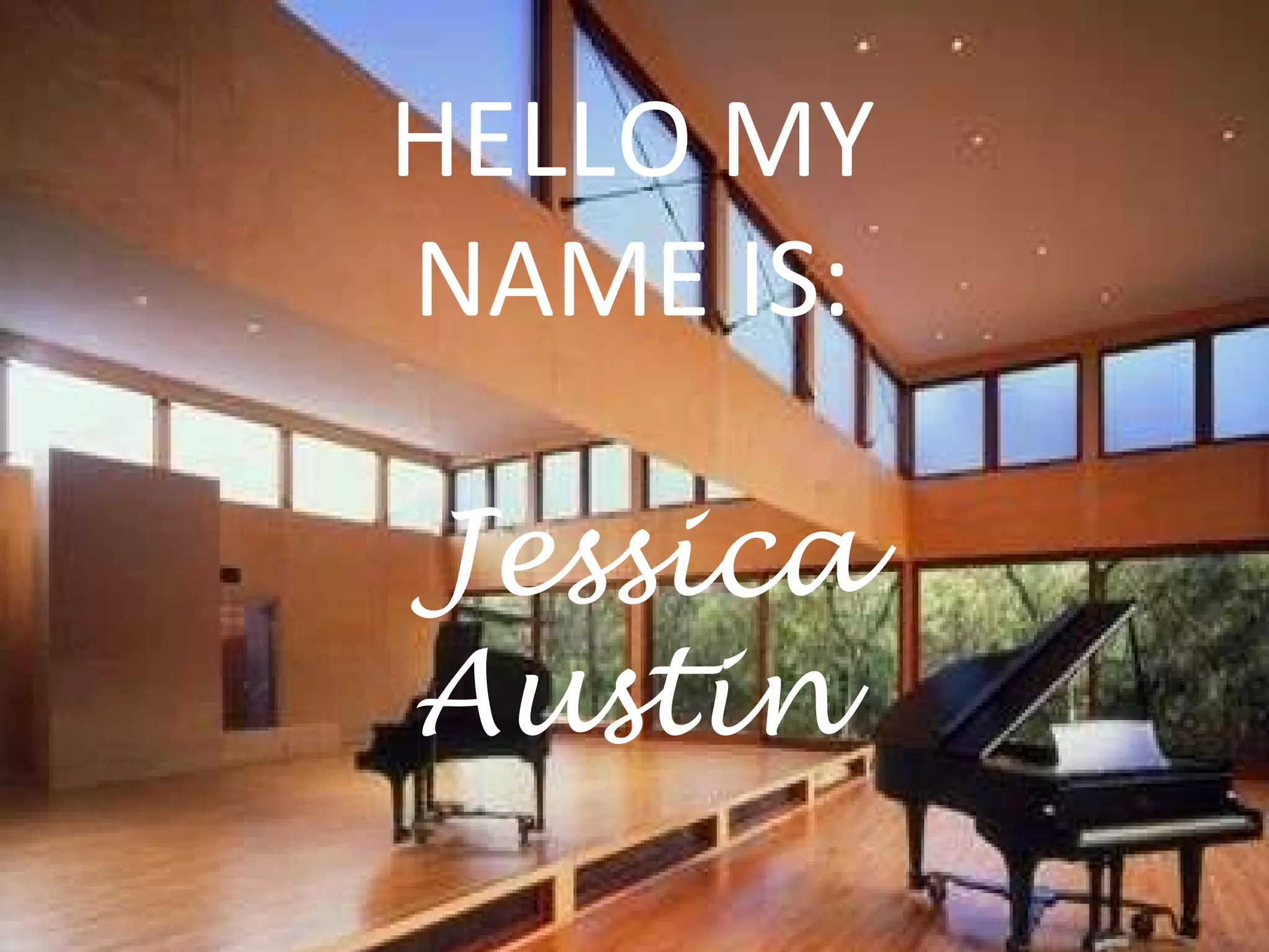 Jessica Austin introduces herself as a hardworking student at Arcadia University studying early childhood education. She has a passion for working with children and has experience volunteering with ESL children at her church and babysitting. She has danced for over 13 years and enjoys spending time with friends and family. Her goals are to help others and have a career that does not involve working without purpose, living away from loved ones, or becoming bored.