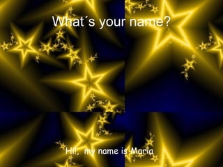 Maria is a 10-year-old girl who enjoys rollerblading, basketball, and art class on Fridays. She gets to school by car and bike and her favorite color is blue. For meals, she has cereal and orange juice for breakfast, fish and chips for lunch, and pizza for dinner. The document also provides brief introductions for Sara, Ainhoa, Martina, and Laura, who are each 10 or 11 years old.