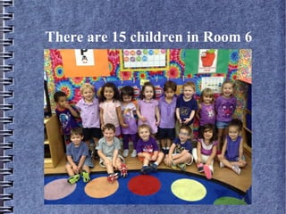 There are 15 children, 8 boys and 7 girls, in Room 6. The class has 3 teachers and profiles each student, presenting their photo and information about their family. The document introduces each of the 15 students in the class, Room 6.