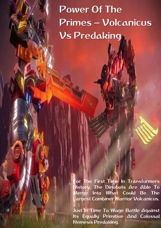 This document provides information about the Transformers franchise, including its origins, key characters, and history. It discusses how Transformers began as a toy line in the 1980s and expanded to include animated series, comics, films, and games. The first section focuses on the original Generation 1 continuity, describing main Autobots like Optimus Prime, Jazz, and Skyfire, as well as Decepticons led by Megatron. Later sections cover subsequent series like Beast Wars and key characters such as Rodimus Prime, Galvatron, and Star Saber. The document also includes images of classic Transformers toys and characters.