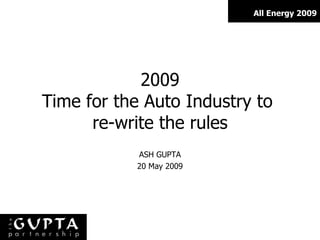 The document discusses the need for the auto industry to undergo significant changes in the wake of financial turmoil among major players. It emphasizes the opportunity to innovate with new technologies like in-wheel motors and fly-by-wire systems, positioning Japan, China, and the USA as key strategic centers for a sustainable future. The author calls for concerted efforts in policy, support, and coordination to facilitate this transformation.