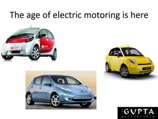 The document discusses emerging business opportunities for software developers in electric vehicle (EV) interfaces as cars enter the digital domain and connectivity becomes more important. It notes several alliances between automakers and technology companies working on EV interfaces, and suggests that EVs may provide new ways for automakers, dealers, and software developers to make money through digital services, as the interface becomes a new gateway and strategic area for companies.