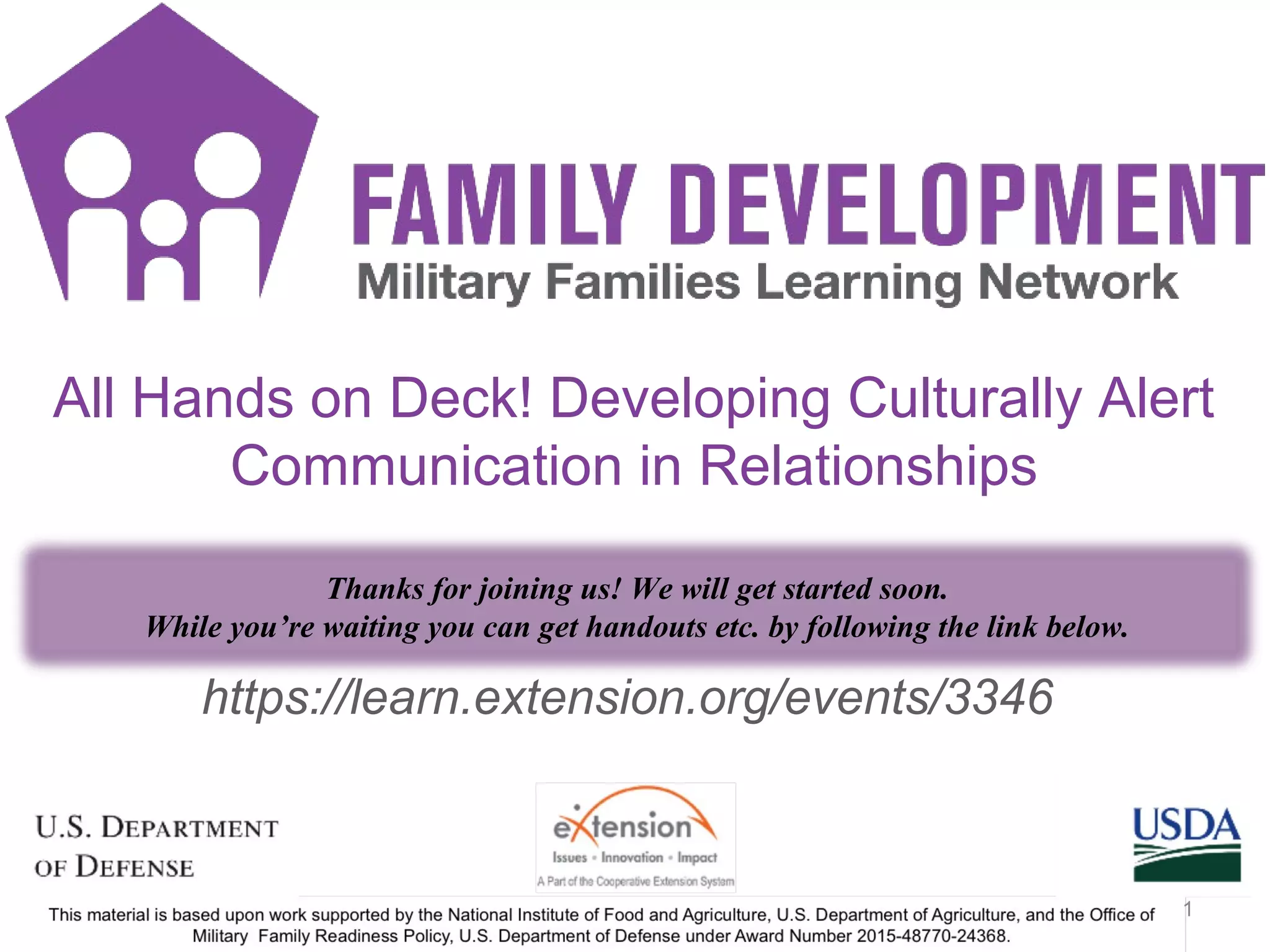 The document outlines a webinar focused on enhancing culturally sensitive communication in relationships, particularly involving military families and diverse populations. It discusses the importance of understanding intersectionality, individual identities, and the challenges faced by those with marginalized identities. The presentation emphasizes the need for self-awareness, empathy, and effective strategies to foster inclusive interactions.