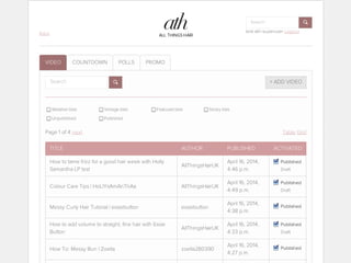 The Content Management System driving a channel created with the some of the most prolific video bloggers on Youtube sharing styling tips and trends about all things hair. The Content is automatically populated based on google widgets and search as the system builds a database tailored to their specific hair type and recommends products perfectly suited to viewers from leading Unilever brands like Toni & Guy, TRESemmé and VO5, which can then be purchased online.