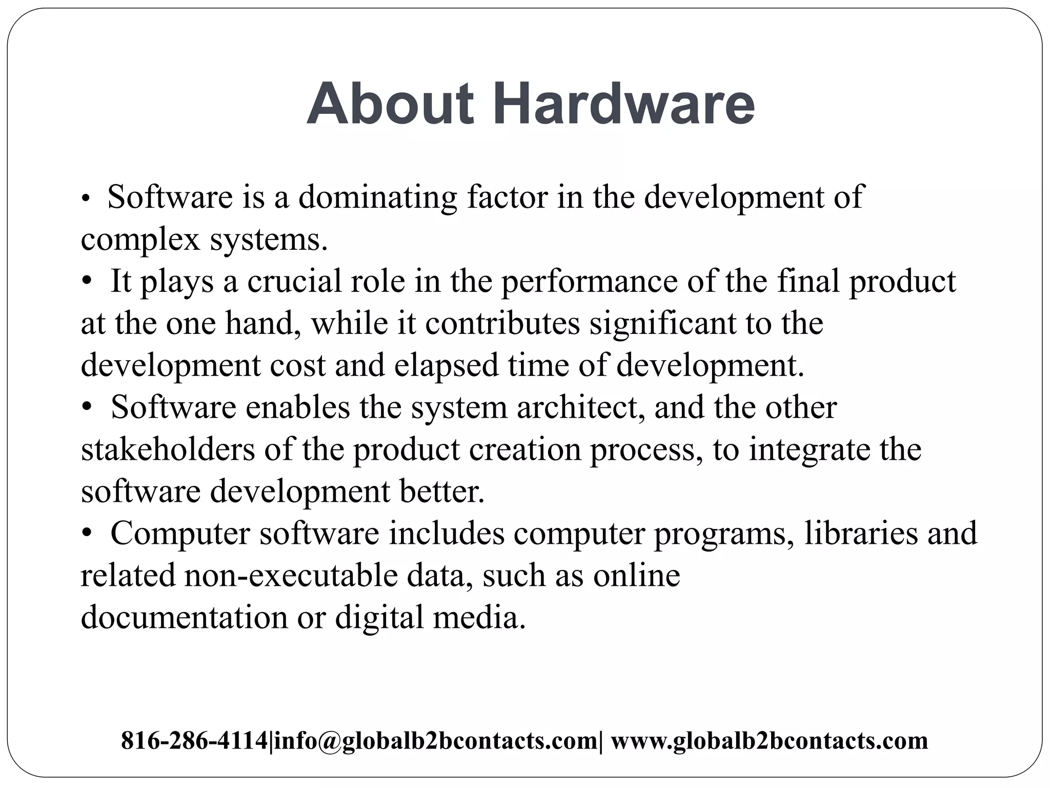 Global B2B Contacts LLC offers specialized mailing lists for professionals in technology and business fields, focusing on enhancing marketing campaigns through accurate and targeted data. Their services include a comprehensive database with verified contact information, assisting in lead generation and improving campaign response rates. They provide options for customization and a free consultation to help businesses identify target markets effectively.