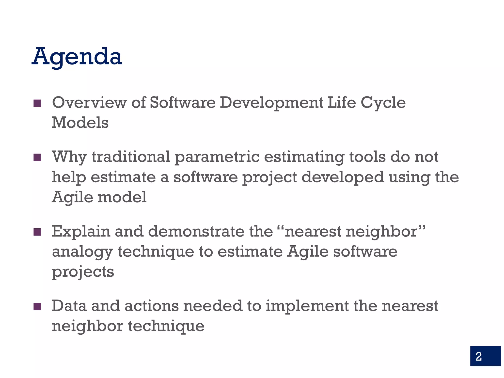 The document discusses estimating agile software development projects, focusing on the limitations of traditional parametric estimating tools in this context. It proposes a 'nearest neighbor' analogy technique for cost estimation based on historical project data while identifying necessary data for effective implementation. The document emphasizes the importance of selecting relevant features, operating environments, and team experience in improving estimation accuracy for agile initiatives.