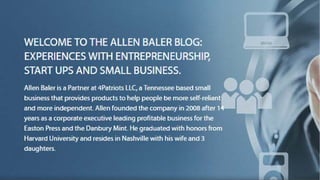 Allen Baler, a Harvard graduate and partner at 4Patriots LLC, shares insights on entrepreneurship, emphasizing the ease of starting a business today compared to the past. He highlights the importance of sales skills, monitoring the bottom line, and managing potential legal liabilities for long-term success. Baler also encourages aspiring entrepreneurs to pursue their ideas while being aware of the mental challenges that can arise during their journey.