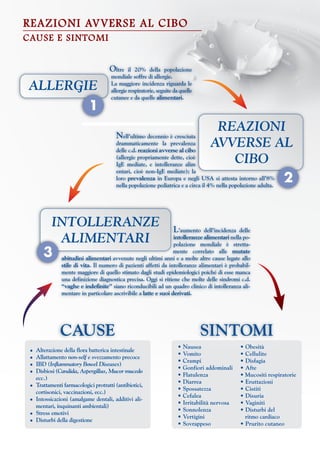 Il documento discute la crescente incidenza delle reazioni avverse al cibo, inclusi allergie e intolleranze, evidenziando l'aumento della loro prevalenza nella popolazione. Propone varie terapie, tra cui l'uso di complessi omeopatici chiamati 'allergy plex' per il trattamento di intolleranze, e descrive le modalità di somministrazione. Viene sottolineato l'importanza di una corretta diagnosi e l'adeguato approccio terapeutico per migliorare la qualità della vita dei soggetti affetti.