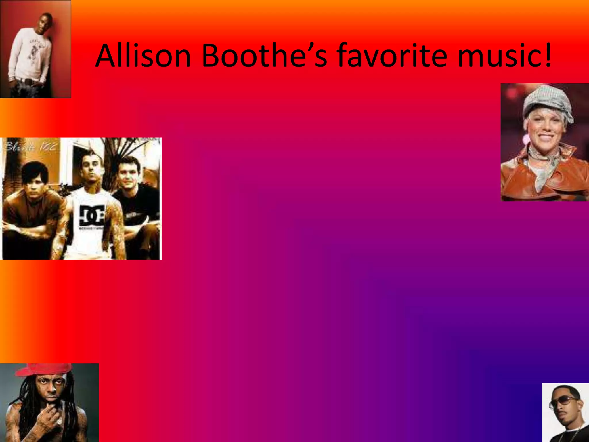 This document lists Allison Boothe's favorite music, food, stores, colors, and things to do in 5 short sections with no additional details provided about her preferences.