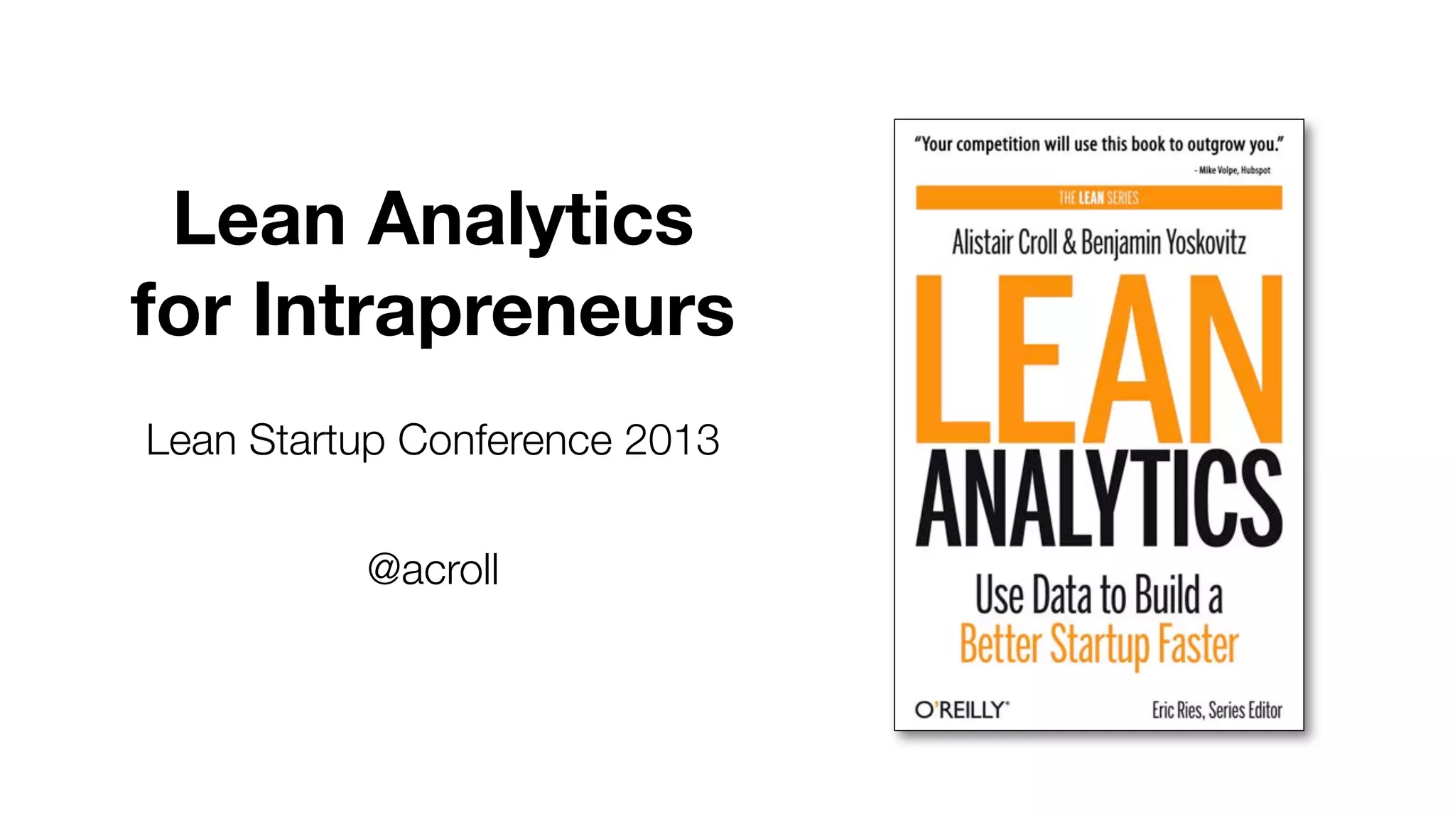 This document provides an introduction to Lean Analytics for intrapreneurs. It begins with two key lessons: companies die when they fail to adopt new business models, and the difference between a rogue agent and special operative is permission. It then discusses Lean Analytics fundamentals like good metrics being understandable, comparative, ratios or rates, and behavior changing. It covers qualitative vs quantitative data, exploratory vs reporting analytics, and examples of leading metrics. The document emphasizes focusing on one key metric per business stage and provides examples of common metrics for different business models and stages.