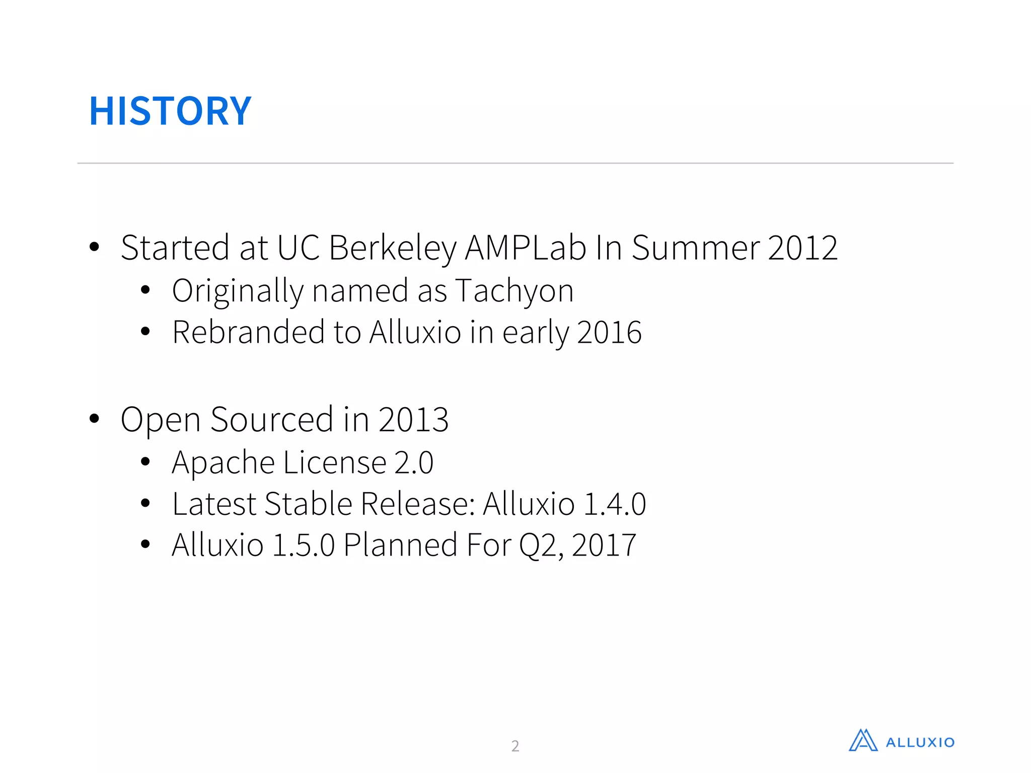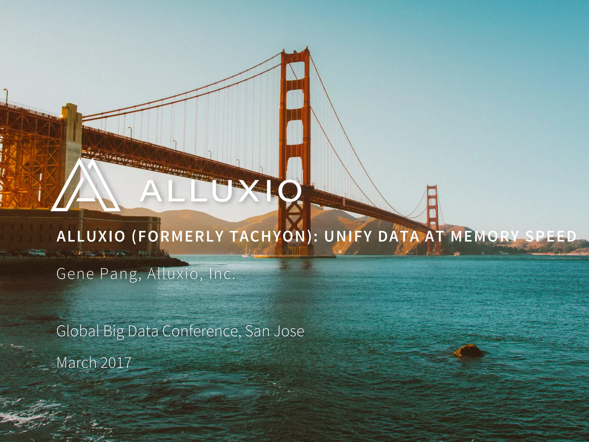 Gene Pang of Alluxio, Inc presented on Alluxio, an open source project that provides unified access to data across storage systems at memory speed. Alluxio allows data to be accessed locally or from remote Alluxio nodes, accelerating data access by up to 30x for companies like Baidu. It also enables data sharing between jobs and applications at memory speed instead of disk speed, reducing Barclays' workflow iteration time from hours to seconds. Additionally, Alluxio provides a unified namespace to access data from multiple storage systems like S3, HDFS and NFS through a single interface without changing applications. This feature has improved performance by 15x-300x for companies like Qunar.