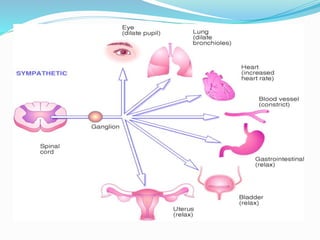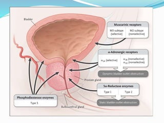 The document outlines the classification and effects of alpha (α) blockers, detailing both non-selective and selective types, with examples of medications and their respective actions in various systems of the body. It discusses the therapeutic uses of these blockers, particularly in conditions such as hypertension, pheochromocytoma, and benign prostatic hyperplasia (BPH), while also highlighting side effects associated with their use. Additionally, it covers specific drug properties, pharmacokinetics, and recommended patient management strategies.