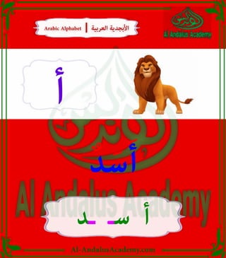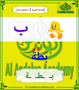 The document contains the Arabic alphabet presented in various forms. It includes multiple references to the Arabic script alongside different examples of words and letters. The primary focus is on the structure and representation of the Arabic language.