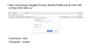 This document provides a 3-step configuration guide for the MTNL FTTH ONT 100C device: 1) Access the device admin page at http://192.168.1.1/ with username "root" and password "system", 2) Configure the WAN settings including username as the telephone number suffixed with "@a" and password as the CA number, and 3) Reboot the device by clicking "Reboot" under "Maintain" to complete the configuration.