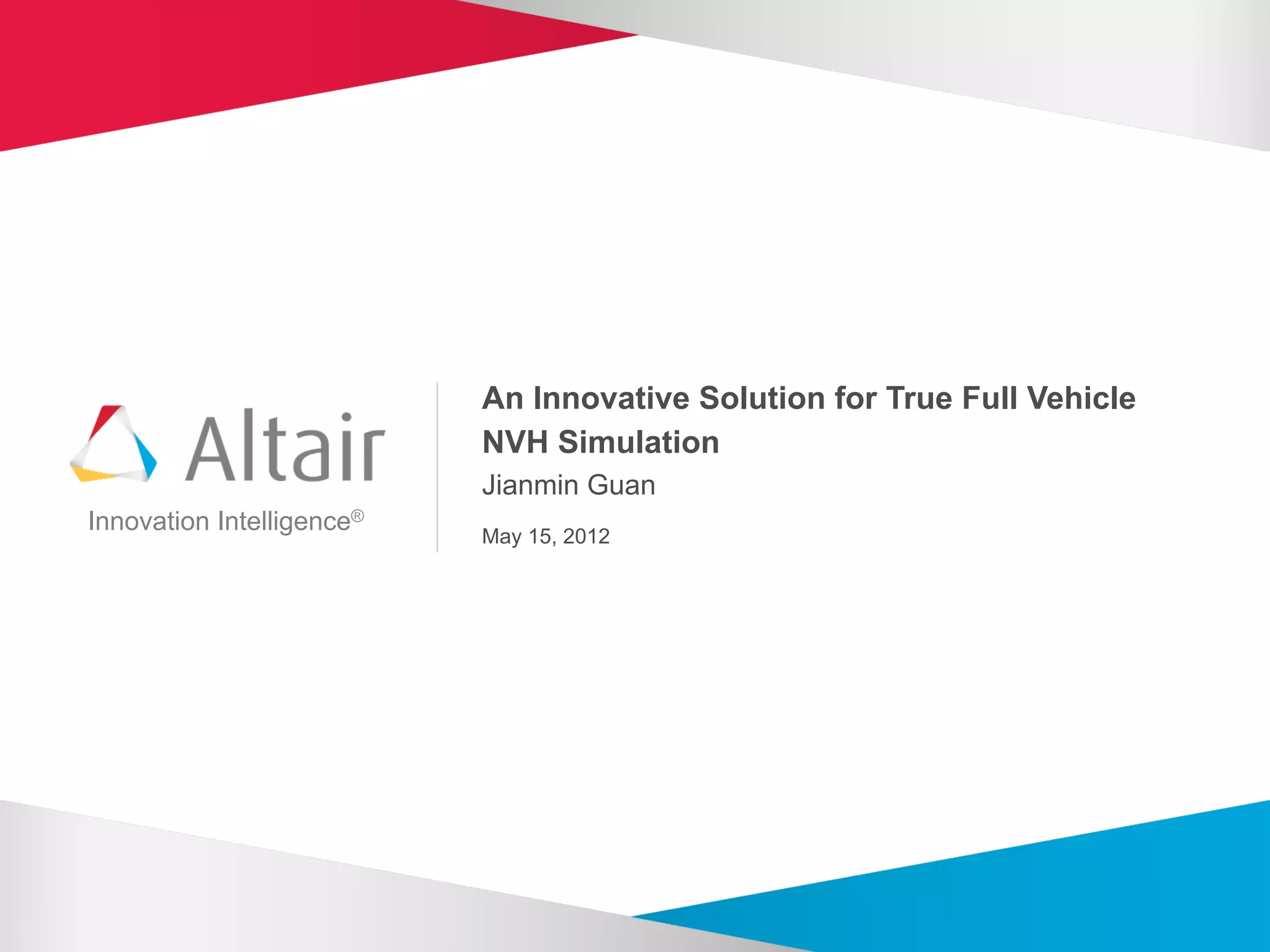 The document discusses Altair's innovative solution for full vehicle NVH (noise, vibration, and harshness) simulation, emphasizing advancements in simulation, optimization, and engineering decision-making. It outlines various methodologies and tools developed for effective NVH diagnostics, including modes, grid participation, and transfer path analysis, while highlighting the benefits of true full-vehicle simulation. The document also describes the integration of these tools to enhance prototype development, problem resolution, and the overall optimization process in vehicle engineering.
