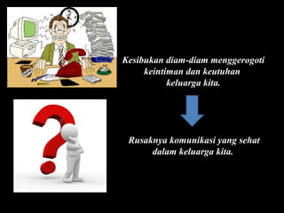 Kesibukan dapat merusak keintiman dan komunikasi dalam keluarga, yang sangat bergantung pada altar keluarga yang dibangun dengan rasa takut dan cinta kepada Tuhan. Altar keluarga mencakup ucapan syukur, pembelajaran firman Tuhan, dan saling mendukung di saat sulit, menciptakan keterbukaan antar anggota keluarga. Kita dianjurkan untuk menjadi agen dalam membangun altar keluarga meskipun belum mengalami pergumulan besar, agar diberkati oleh Tuhan.