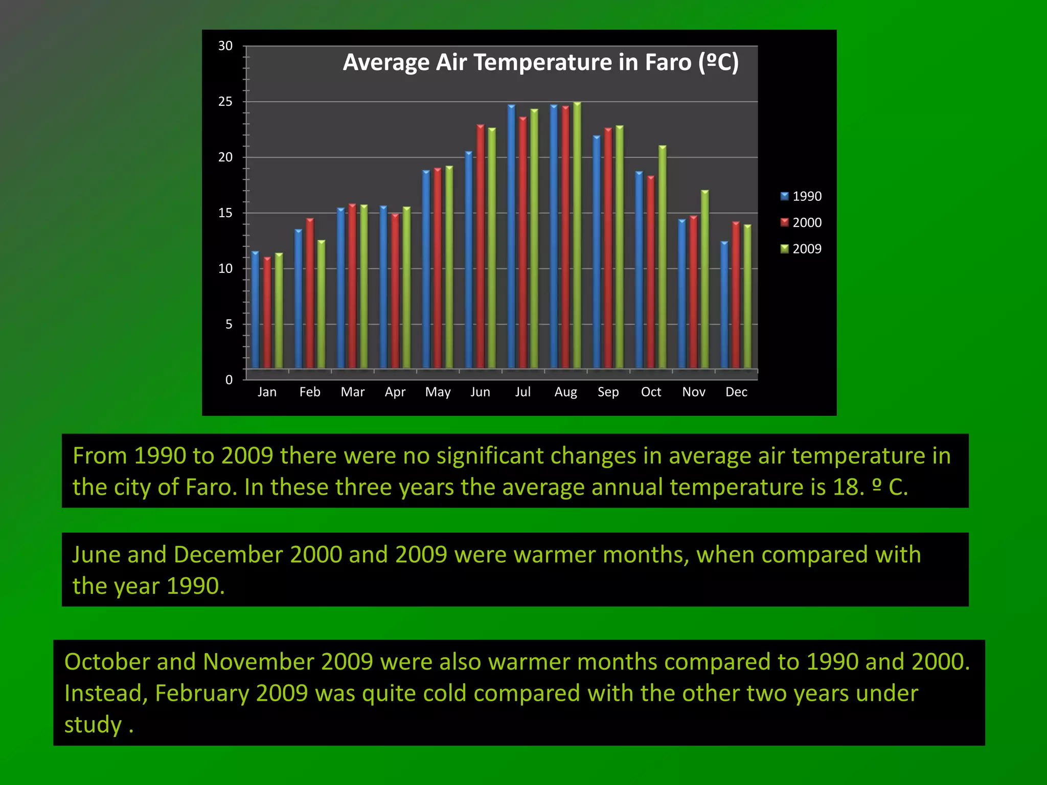 The document discusses how climate change is impacting the Algarve region of Portugal. It finds that while average annual temperatures have not significantly increased from 1990 to 2009, some individual months in 2000 and 2009 were warmer than 1990. This could impact tourism patterns in the region. Higher water temperatures are also causing fish species normally found further south to appear in the Algarve. Some marine plant life is disappearing as temperatures rise. The document also notes concerns around increased risk of diseases, heat waves, wildfires, and changes to rainfall patterns with climate change.