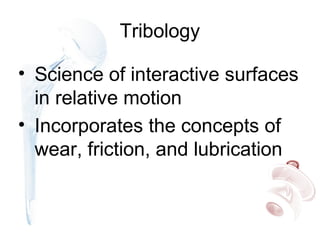 Highly cross-linked polyethylene (XLPE) has been shown to reduce wear rates compared to conventional polyethylene in hip replacements. This reduced wear is associated with lower rates of osteolysis. XLPE appears compatible with large diameter heads, though thin liners may be at increased risk of early failure. Fatigue properties of XLPE are favorable though long-term data is still needed. Ceramic-on-ceramic bearings have the lowest wear rates of any bearing surface but can fracture, though modern designs have low fracture risks. Ceramic generates fewer inflammatory particles than other bearings and may have the best long-term durability without osteolysis. Metal-on-metal bearings are no longer recommended due to high revision rates