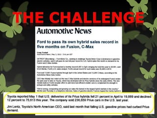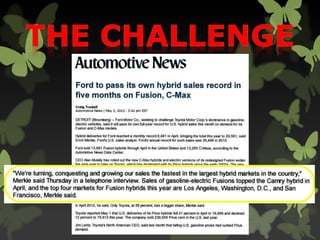 The document discusses the need to reduce greenhouse gas emissions and dependence on foreign oil by transitioning to more sustainable energy sources and bio-friendly fuels. It notes that this transition will be an ongoing process that requires new technology and is expensive. Sustainable energy sources mentioned include hydroelectricity, geothermal, solar, wind and tidal power. Biofuels such as ethanol, biodiesel and hydrogen are highlighted as high-benefit renewable options. Electric vehicles, hybrids and alternative fuels like natural gas are presented as promising technologies but also have challenges and limitations.