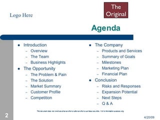 The document discusses alternative ideas for agenda slides, encouraging creativity in their design. It emphasizes core topics like the company, opportunities, and moving forward. Repetitive phrases suggest a need to reorganize content for clarity.