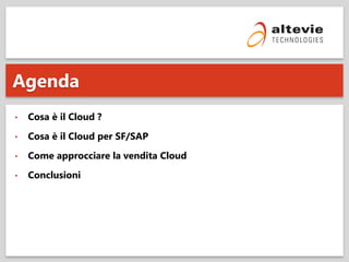 Il documento discute l'evoluzione del cloud computing, evidenziando come la maggior parte delle grandi imprese stia già adottando soluzioni cloud per migliorare flessibilità e agilità. Viene presentata la strategia di SAP nel settore cloud, la quale include una vasta gamma di soluzioni integrate e una crescita significativa nell'ecosistema cloud. Infine, si sottolinea l'importanza di approcci strategici nella vendita di soluzioni cloud, enfatizzando la necessità di comprendere le esigenze del cliente e di definire chiaramente i requisiti contrattuali.