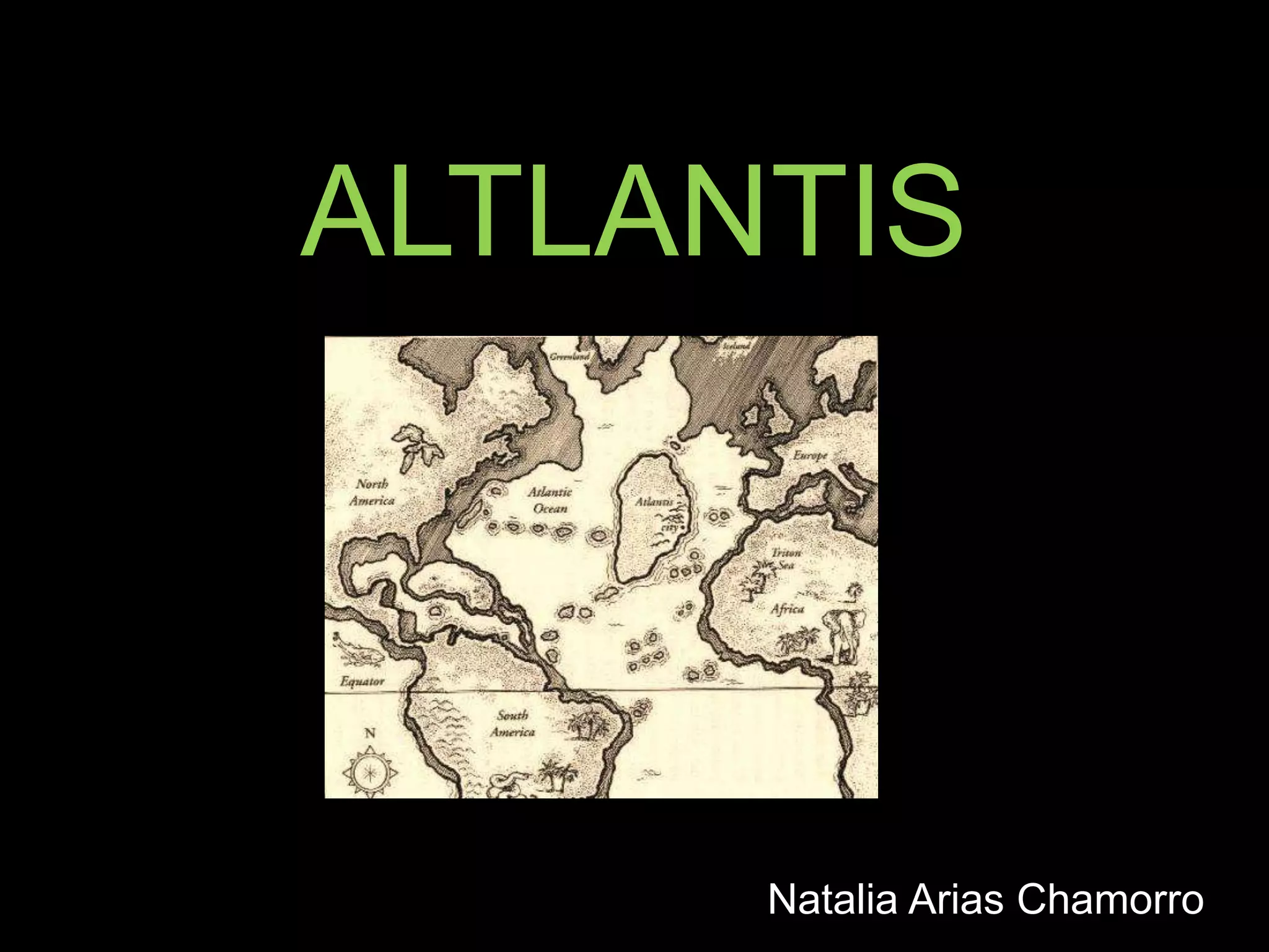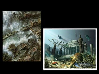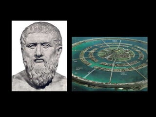 The document discusses various theories about the lost continent of Atlantis. It was first mentioned in Plato's dialogues, where he hypothesized the existence of an island continent beyond the Strait of Gibraltar that was larger than Africa and Asia combined. While Plato claimed it existed 9,500 years before his writing, Aristotle denied its existence. Numerous hypotheses have been proposed over the centuries about its location and fate, though most scholars today agree that Plato's account was likely fictional rather than historical.
