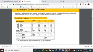 Aluminum hydroxide is produced commercially using the Bayer process, which involves dissolving bauxite in sodium hydroxide. It has a wide range of uses including as a flame retardant, in toothpaste, and as an antacid. It can also be processed into aluminum oxide, which exists in several forms and has applications as an abrasive and refractory material. Ultra-fine aluminum hydroxide specifically has properties making it suitable as a flame retardant and filler.