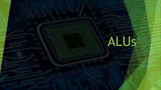 An ALU (arithmetic logic unit) carries out arithmetic and logic operations on operands in computer instructions. It receives an opcode and operands from memory and performs operations like addition, subtraction, AND, OR, XOR. An FPGA (field-programmable gate array) is a programmable integrated circuit that allows a user to implement custom logic functions. Verilog HDL (hardware description language) is used to describe the behavior of digital circuits, including how blocks are connected and data flows through an FPGA.