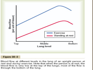 1) Alveolar ventilation refers to the volume of fresh air that reaches the gas exchange areas of the lungs per minute. It is calculated as respiratory rate multiplied by tidal volume minus dead space volume.