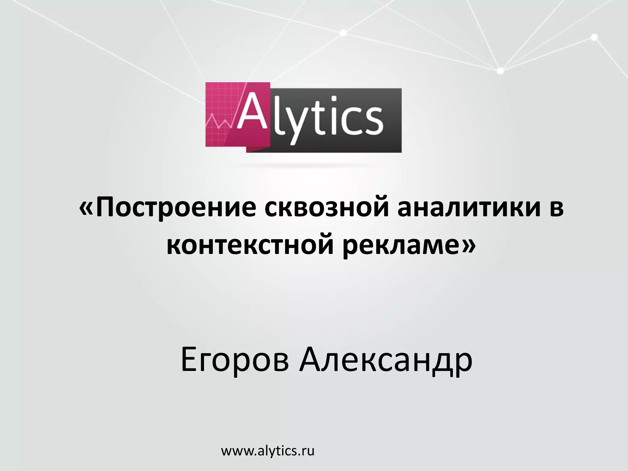Документ описывает платформу alytics для управления контекстной рекламой с акцентом на сквозную аналитику, позволяющую анализировать показатели CPA и ROI по ключевым словам. Рассматриваются методы интеграции различных аналитических инструментов, таких как CRM и системы call-трекинга, для оптимизации затрат на рекламу и увеличения конверсий. Платформа также предлагает стратегии управления ставками с целью максимизации результатов рекламных кампаний.