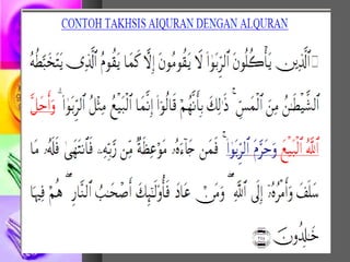 تتناول الوثيقة تعريفات وأمثلة حول 'الحكم العام' و'الحكم الخاص' في اللغة العربية، موضحةً الفرق بين اللفظ العام الذي يشمل معاني مختلفة واللفظ الخاص الذي يدل على معنى محدد. كما تناقش كيفية تخصيص الأحكام العامة باستخدام الأدلة، سواء من النصوص أو من التعاليم الشرعية. الوثيقة تتضمن أيضًا توضيحات حول أنواع الألفاظ والصيغ المستخدمة في التعبير عن الأحكام.