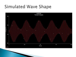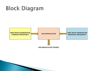 Amplitude modulation (AM) is a modulation technique used for transmitting information via a radio carrier wave. In AM, the amplitude of the carrier wave is varied in proportion to the waveform being transmitted, such as sounds or television pixels. AM has a wider coverage area than FM due to atmospheric propagation. It also allows for long distance propagation because of its wavelength. However, AM signals are not as strong as FM when propagating to obstacles, and only one sideband of the AM signal transmits information, losing power in the other sideband and carrier. Additionally, noise mixes with the AM signal through propagation, making it more difficult to recover the original signal at the receiver. AM is used in radio frequency transmissions.