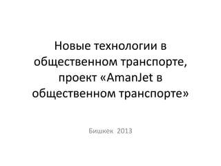 Документ описывает проект 'amanjet' в Бишкеке, направленный на внедрение новых технологий в общественный транспорт. Основные функции включают голосовое оповещение о ближайших остановках, интерактивные услуги для вызова экстренных служб, а также предоставление актуальной информации о трафике и движении. Проект также предлагает возможность оптимизации маршрутов и сбор статистической информации.