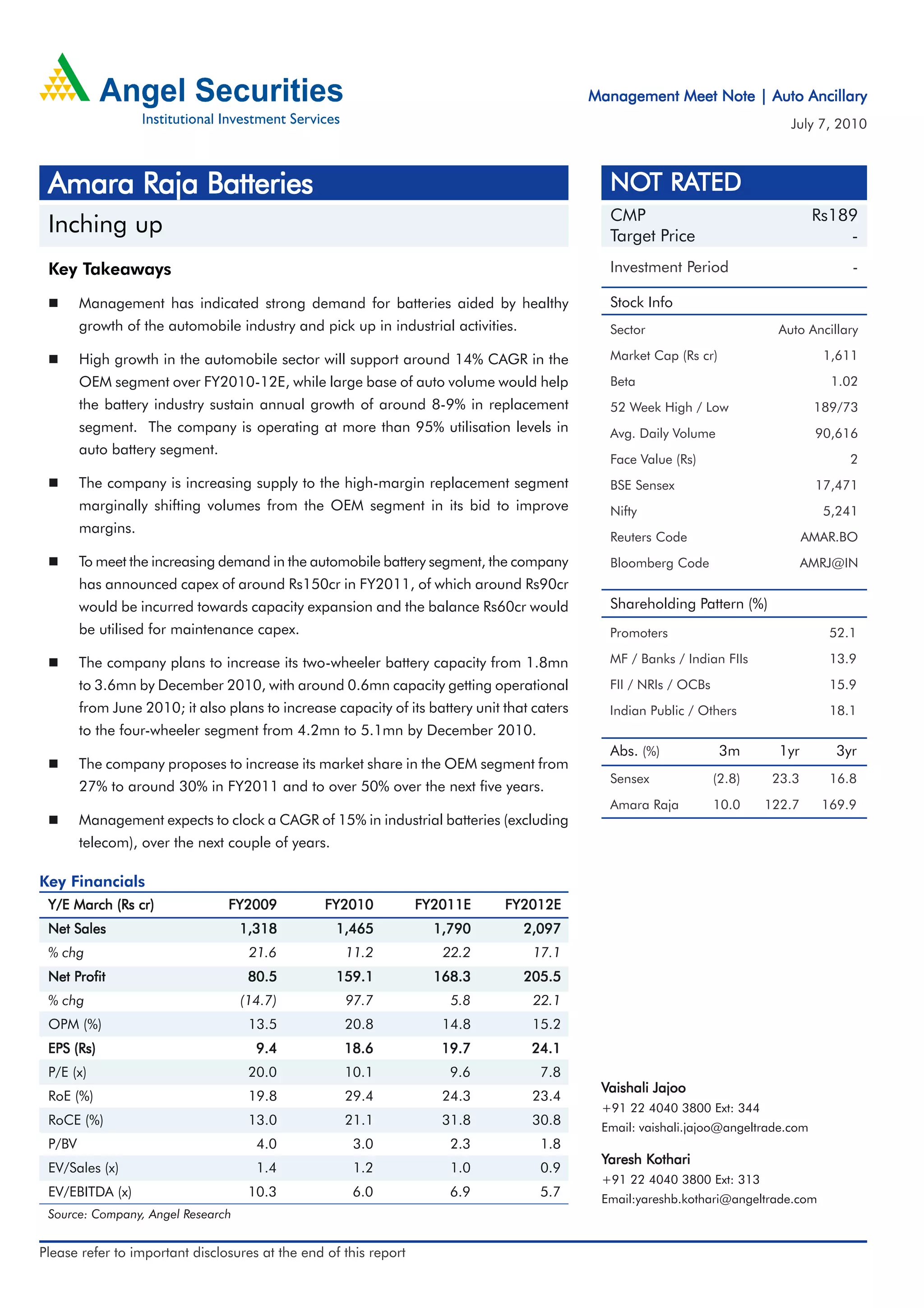 - Management indicated strong demand for batteries from the growing automobile industry and pickup in industrial activities.
