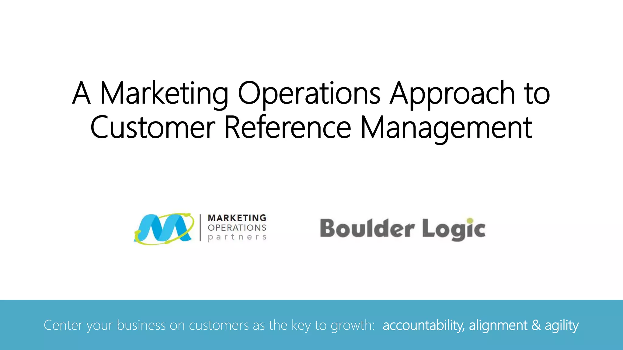 This document discusses marketing operations and customer reference management. It introduces Gary Katz and Joshua Horwitz, experts in marketing operations and customer reference software. It defines marketing operations as a systematic process to drive efficiency, consistency, alignment and accountability in marketing. Customer reference management is the process of promoting and managing how customers participate in sales and marketing. Applying marketing operations principles like process, technology, metrics and accountability can increase the impact of customer references by making more references available, preventing customer burnout, and increasing sales conversion rates.