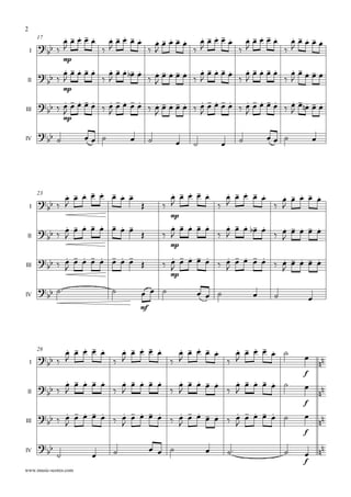 The document contains sheet music for the hymn "Amazing Grace" arranged for trombone quartet. It includes four parts (labeled I-IV) with musical notation spanning multiple pages. The sheet music provides the lyrics, tempo, dynamics, and other performance instructions for playing the hymn arrangement on four trombones.
