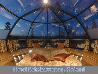 The document describes various travel destinations, highlighting their diversity from Finland's icy forests to Bali's jungles and Paris's streets. Each location is suggested as a perfect place for relaxation. The Cambrian Hotel in Adelboden, Switzerland is specifically mentioned as one of these ideal spots.