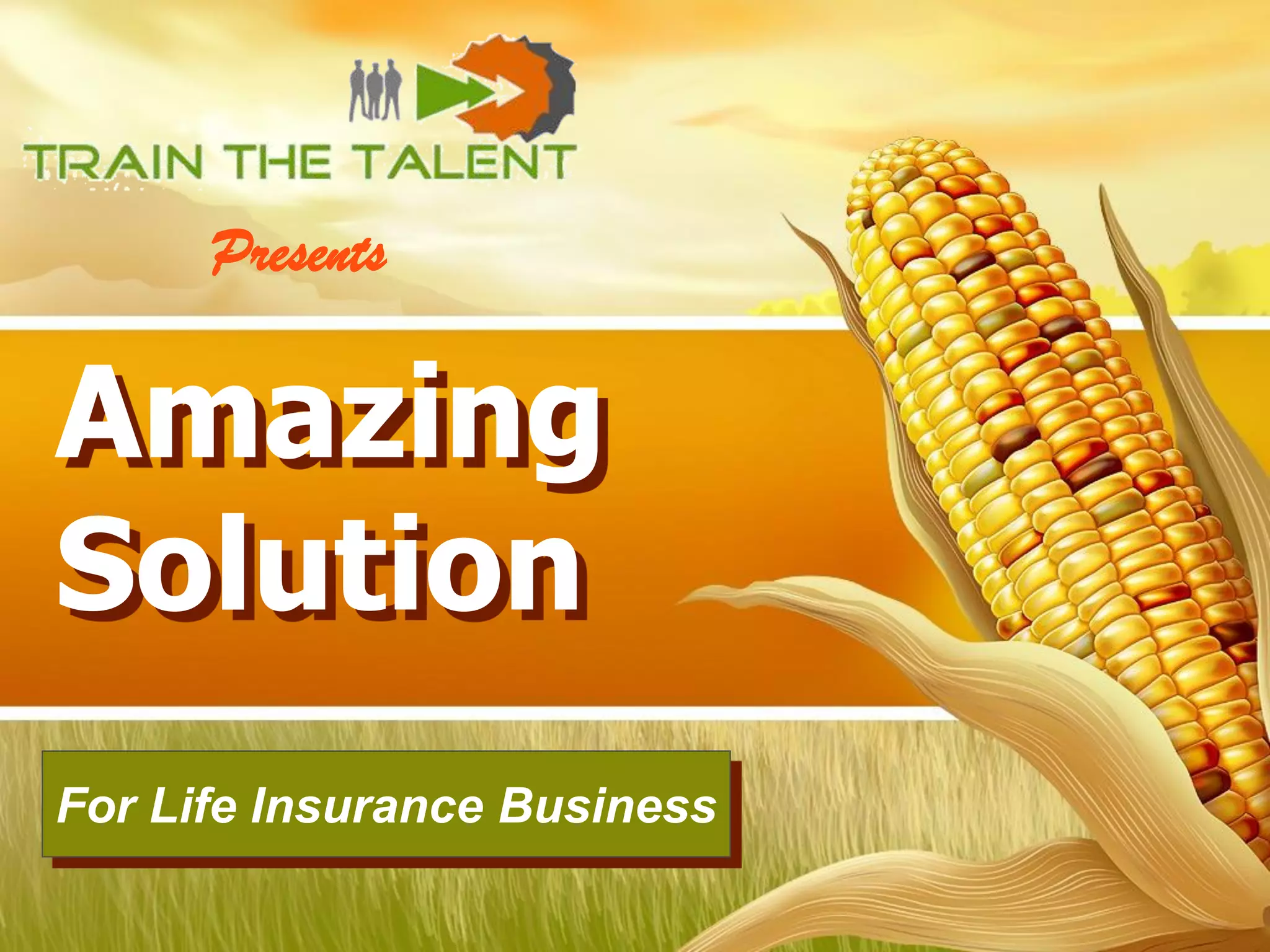 The document outlines challenges in training sales managers, agents, and trainers in the life insurance business and proposes an "Amazing Solution". It identifies problems such as high attrition of sales managers, untrained agents selling improperly, and trainers lacking skills. The solution proposes comprehensive certification programs for sales managers, agents, trainers, and content developers to standardize training according to business objectives and guarantee agent sales skills. The goal is to increase productivity and reduce costs associated with high turnover.