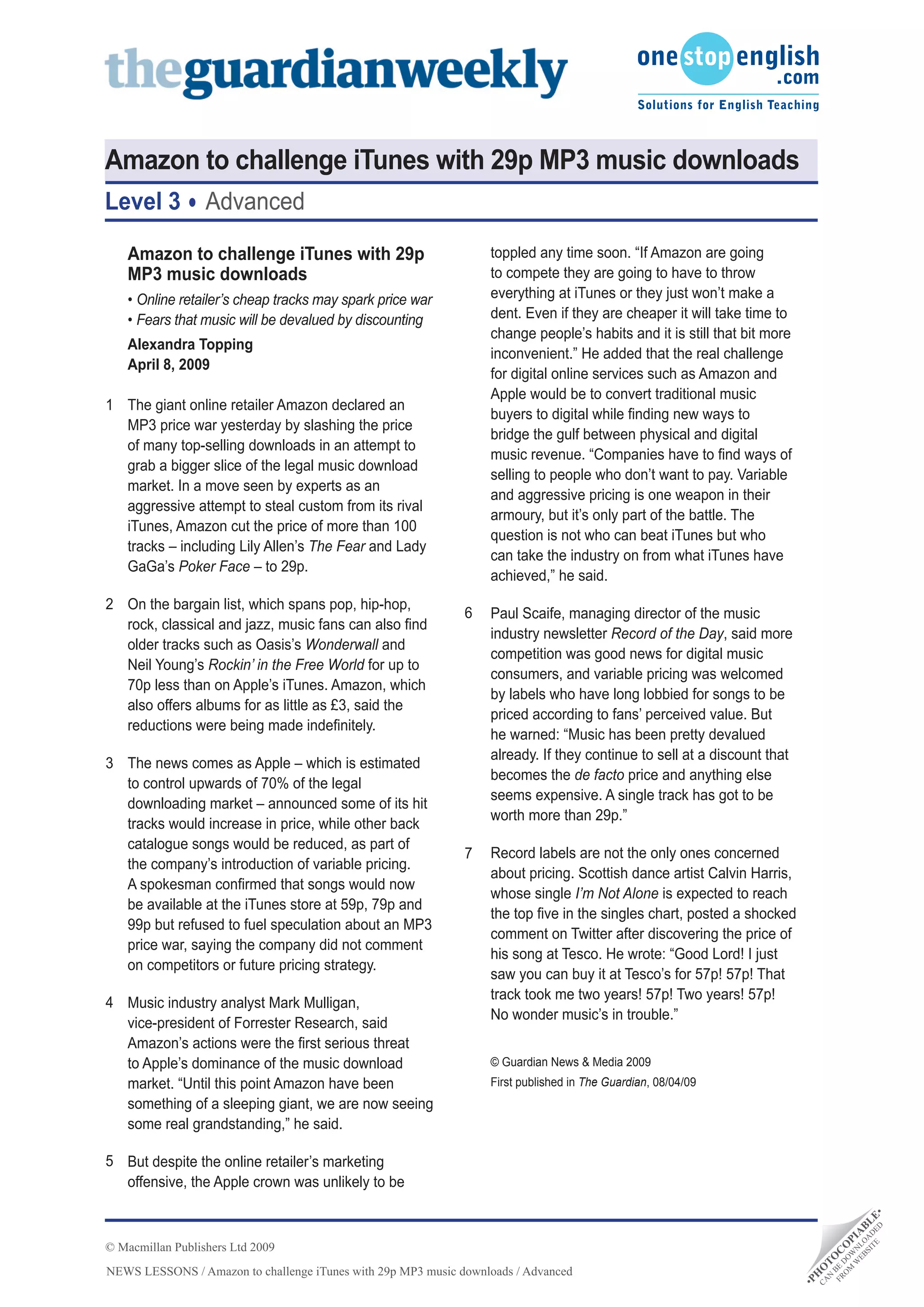 Amazon has slashed the prices of many popular MP3 downloads to 29p in an effort to gain market share from iTunes. This move may spark a price war between the two companies. While Amazon's lower prices pose a threat to Apple's dominance, industry experts say Apple is unlikely to be dethroned soon due to its large customer base and the convenience of iTunes. The long-term challenge for digital music stores is finding new ways to attract traditional music buyers and generate revenue beyond individual song sales.