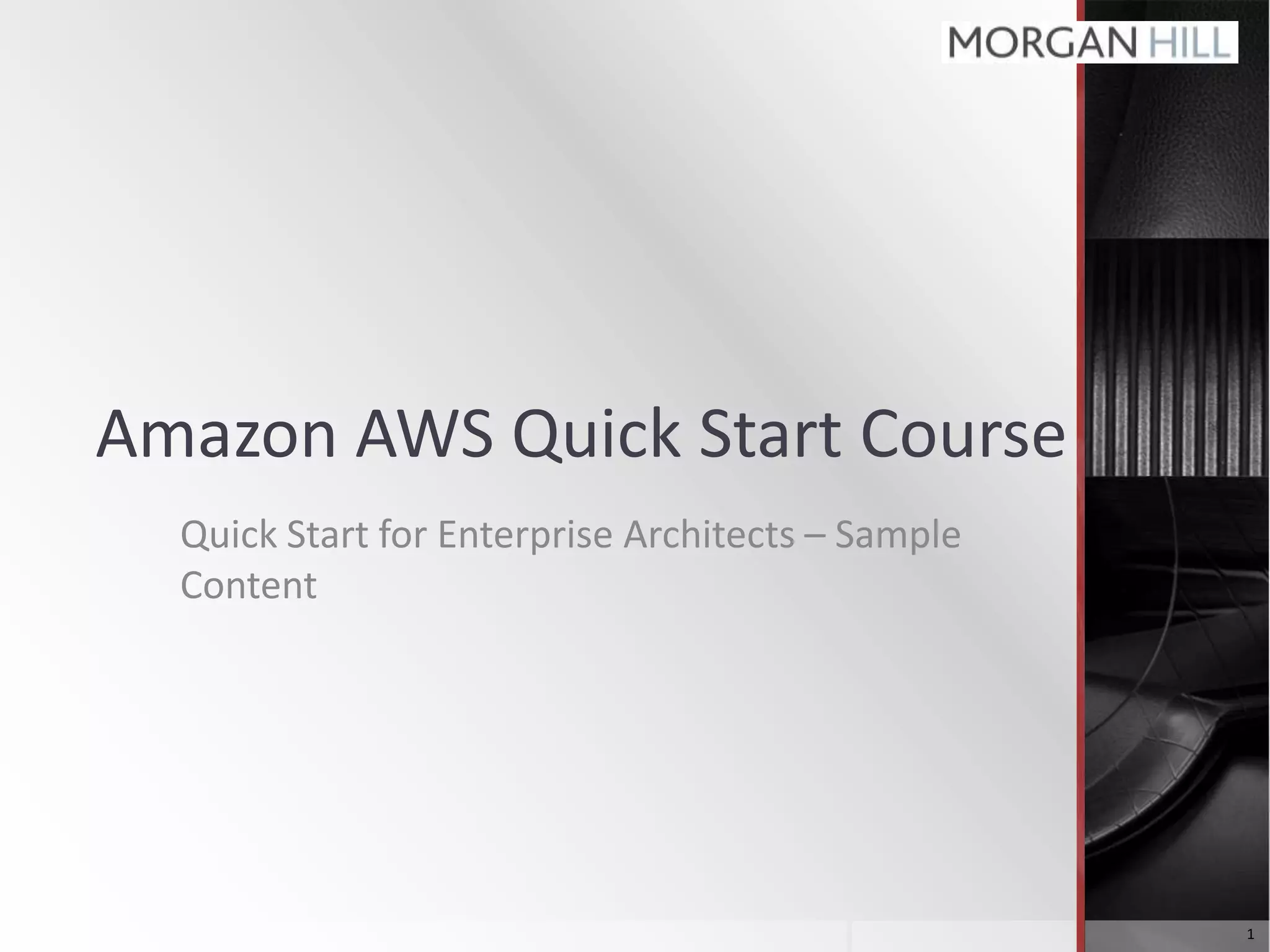The document outlines a quick start course for enterprise architects focusing on Amazon AWS, covering cloud concepts, key AWS components, and best practices for architecting applications in the cloud. It includes hands-on practical exercises for deploying applications and managing resources, as well as discussions on security and hybrid cloud strategies. The course also details the infrastructure as a service architecture and various scaling strategies within AWS.