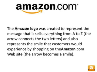 Amazon's logo represents selling everything from A to Z and the smile customers experience shopping on Amazon.com. Founded in 1994, Amazon is a global e-commerce leader with over 28,000 employees and a wide range of products. The company's mission is to be the most customer-centric company and build a place for people to find anything they want to buy online.